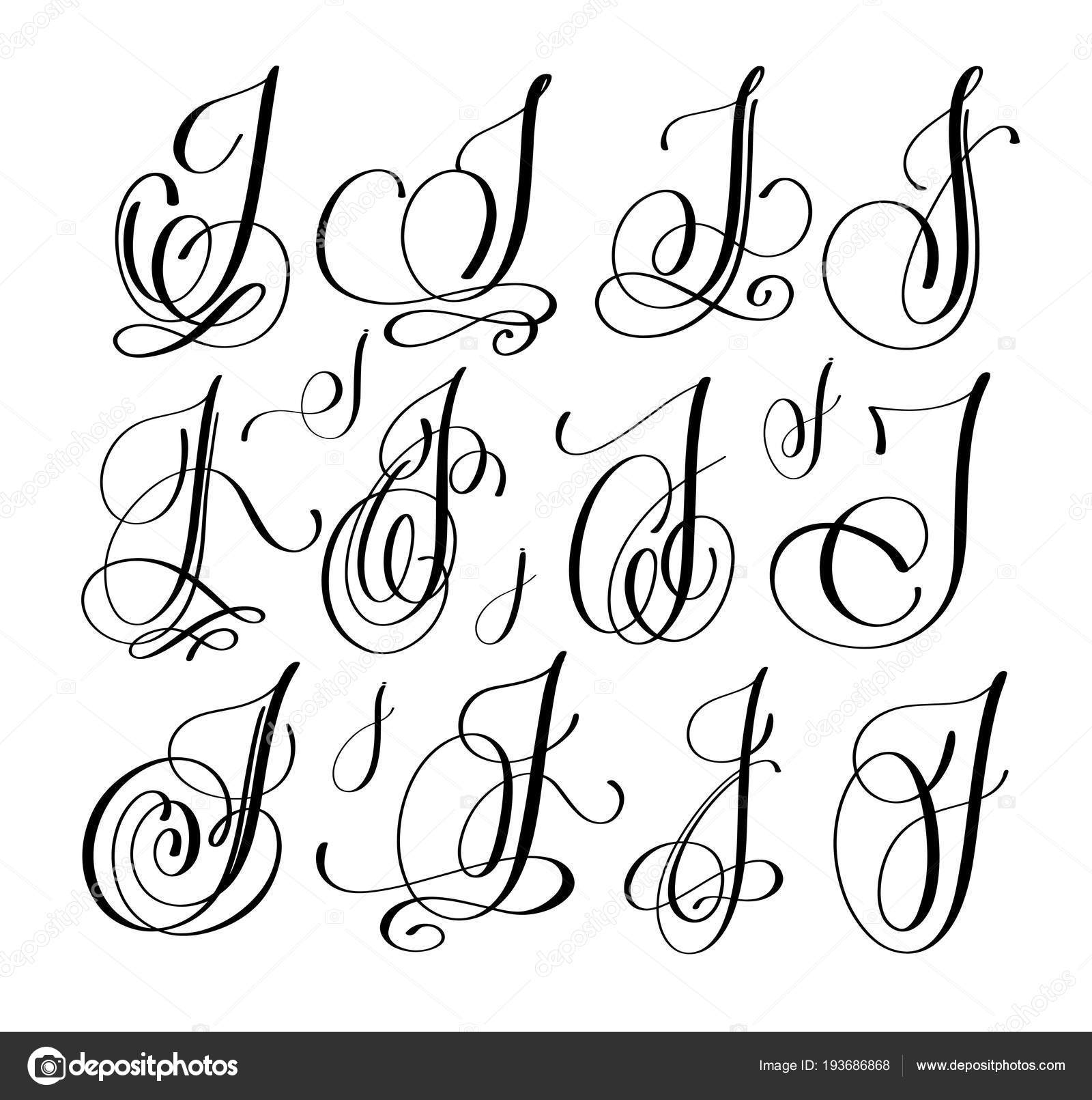 calligraphy lettering script font J set, hand written — Stock Vector © karakotsya 193686868