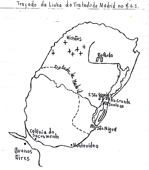 O Tratado de Madri, tinha o objetivo de substituir o Tratado de Tordesilhas (1494), estabelecendo assim, novas fronteiras entre as colônias de Portugal e Espanha na América.. Através deste Tratado, Portugal cedia a Colônia do Sacramento (no Uruguai) para a Espanha. Esta, por sua vez, dava o território ocupado pelos Sete Povos das Missões.