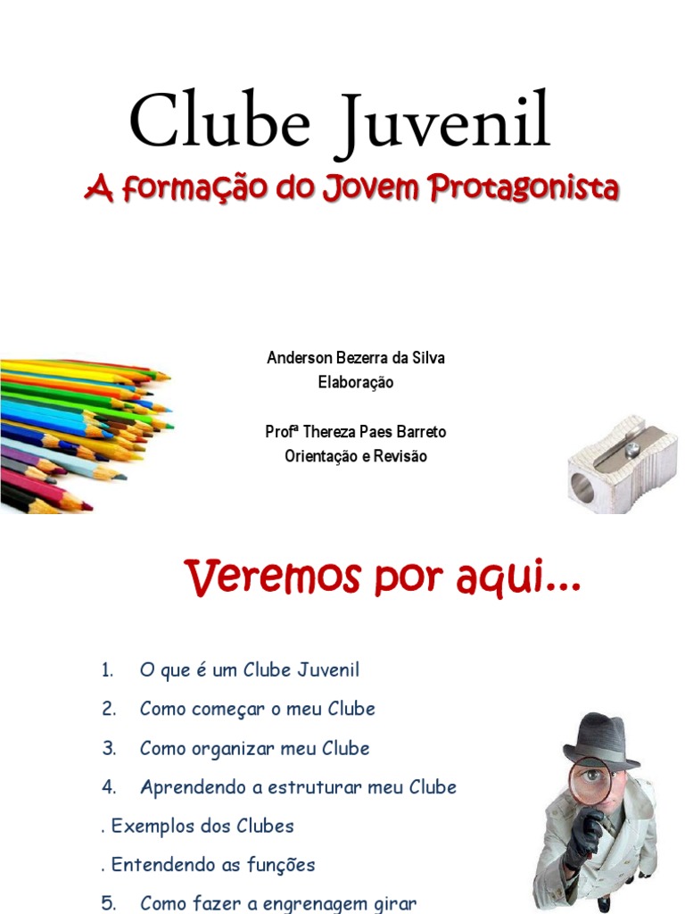 O Clube Juvenil é um espaço criado com caráter de empoderamento do protagonismo juvenil, espaço e tempo no qual os jovens estudantes são convocados a participarem,. Para que um Clube Juvenil seja forte e atuante é fundamental planejar sua organização. Por isso, é muito importante que todos saibam o que cabe a cada um fazer no