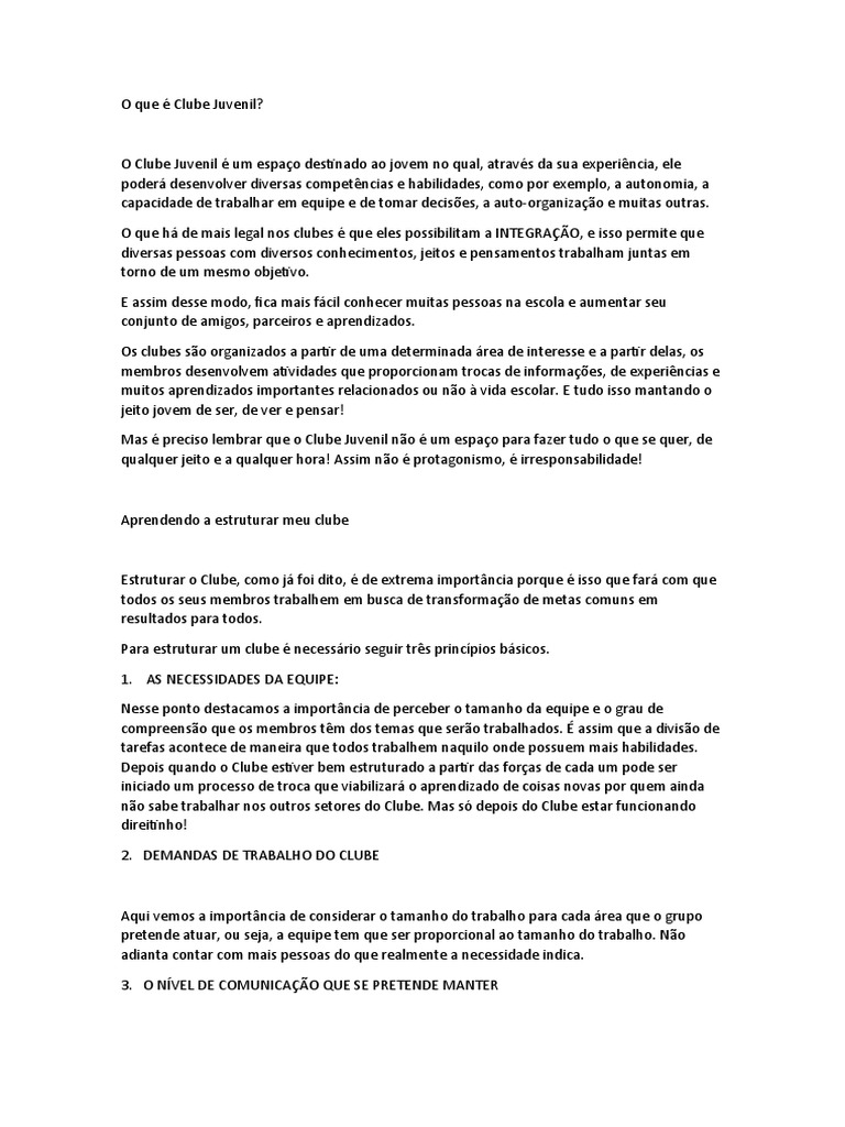 O Que É Clube Juvenil PDF Pensamento Aprendizado
