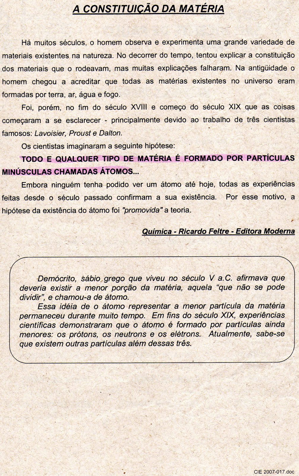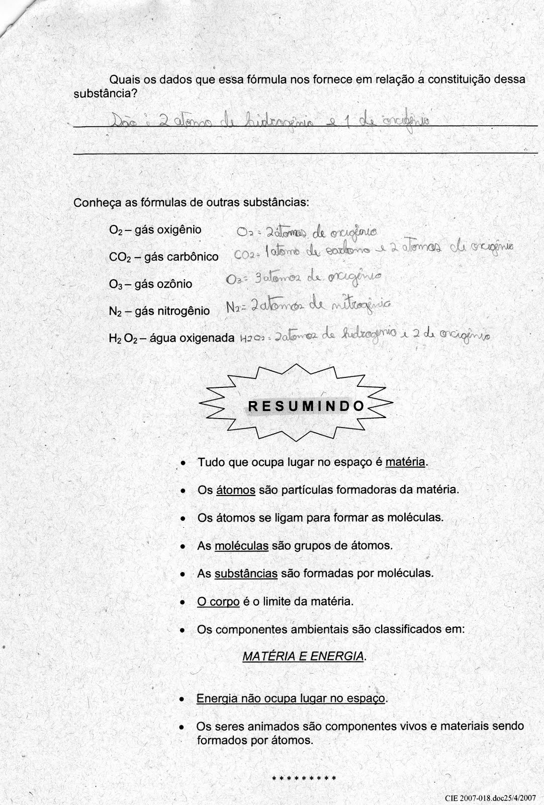 Ensino Fundamental 6° ano A estrutura da matéria