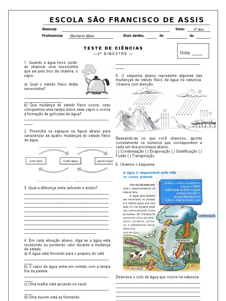 Prova De Ciencias 6 Ano 1 Bimestre Com Gabarito ENSINO